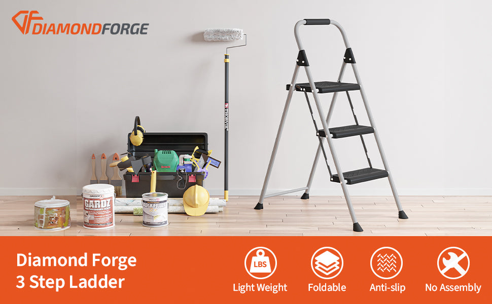 Folding Step Stool with Anti-Slip Wide Pedal, Soft Handle, Anti-Slip Feet, Sturdiest Steel Construction, 900lbs Capacity Steel Ladder for Home and Office.