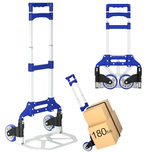 Folding Hand Truck - Aluminum Portable Dolly Cart with Telescopic Handle, Bungee Cord - Compact Lightweight Foldable Luggage Cart for Moving, Home, Auto, 180lbs, Blue $47.05