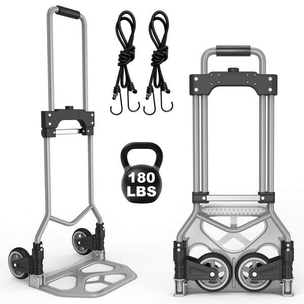 Folding Hand Truck - Aluminum Portable Dolly Cart with Telescopic Handle, Bungee Cord - Compact Lightweight Foldable Luggage Cart for Moving, Home, Auto, 180lbs, Black $47.05